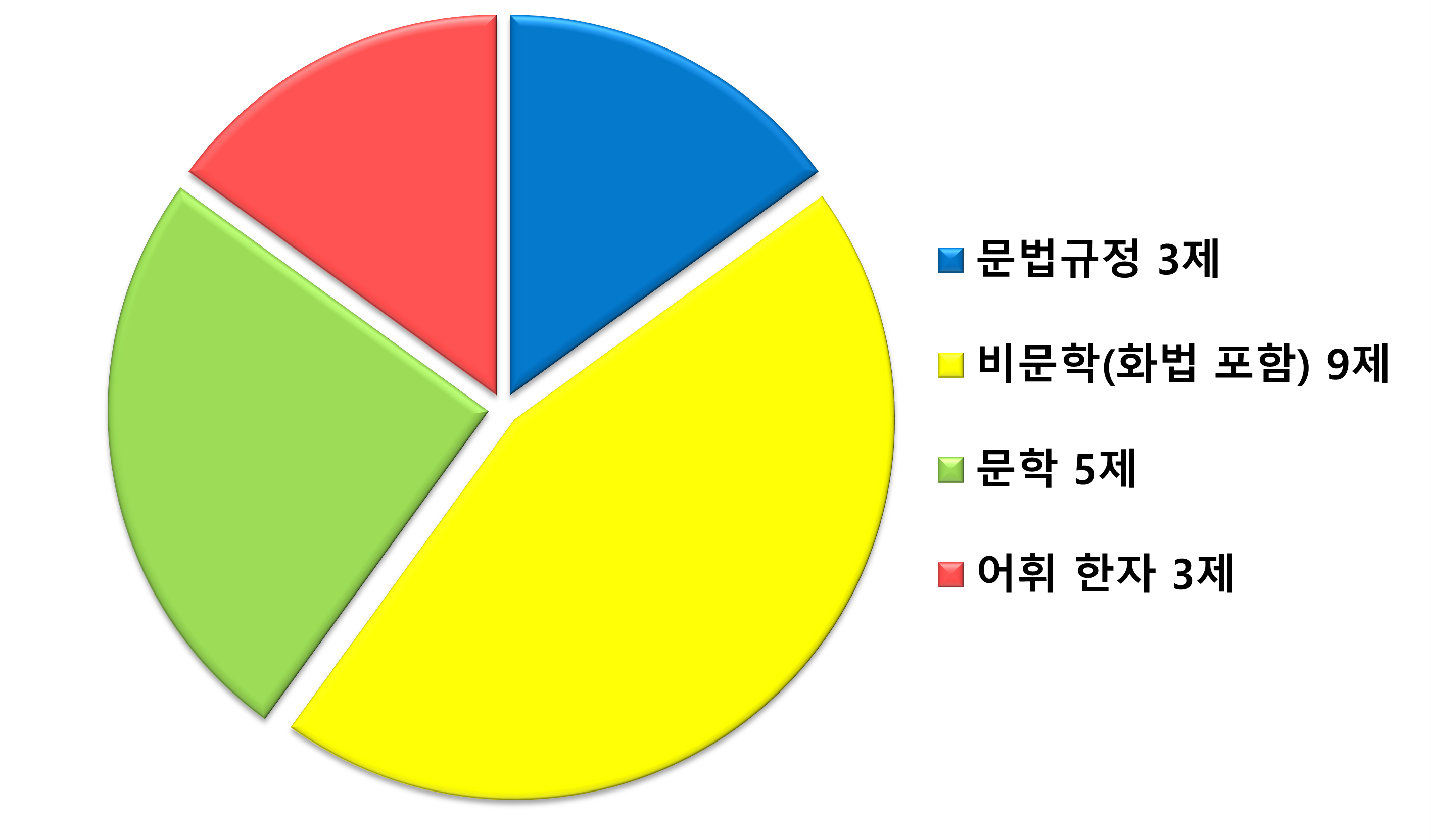 암기 영역은 실용국어 수준으로, 변별력은 독해 추론 유형에서