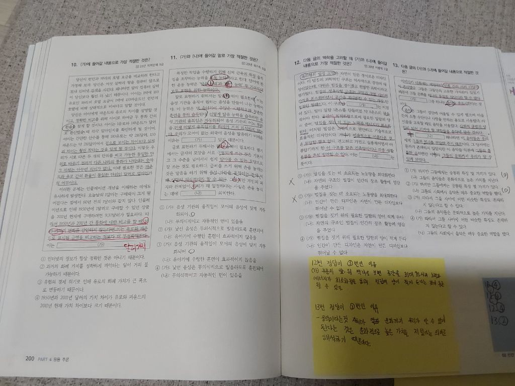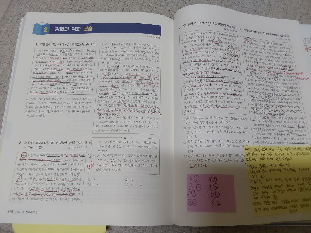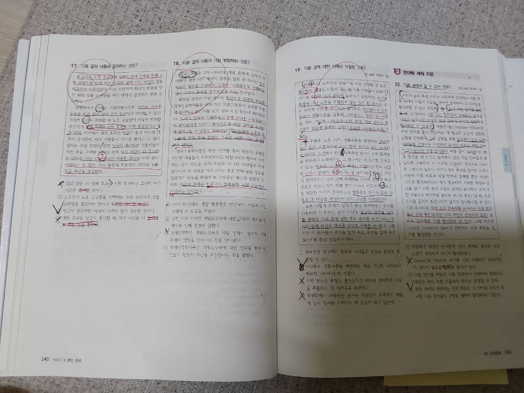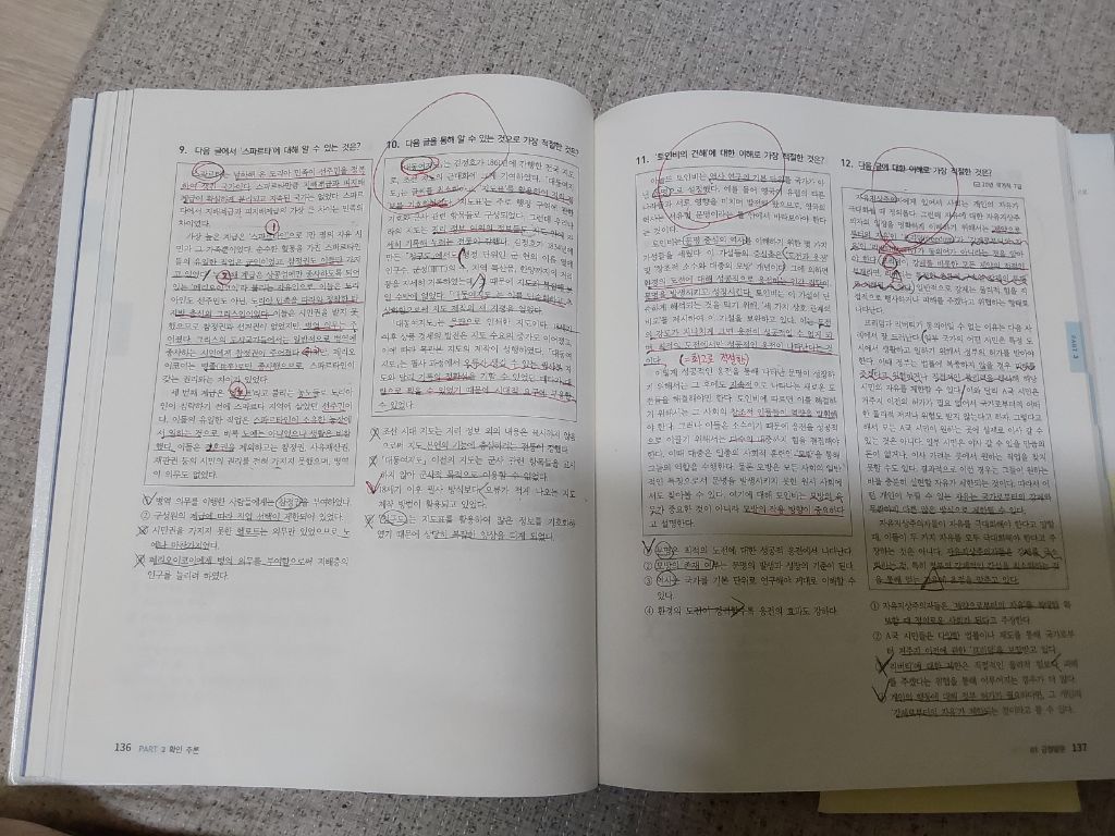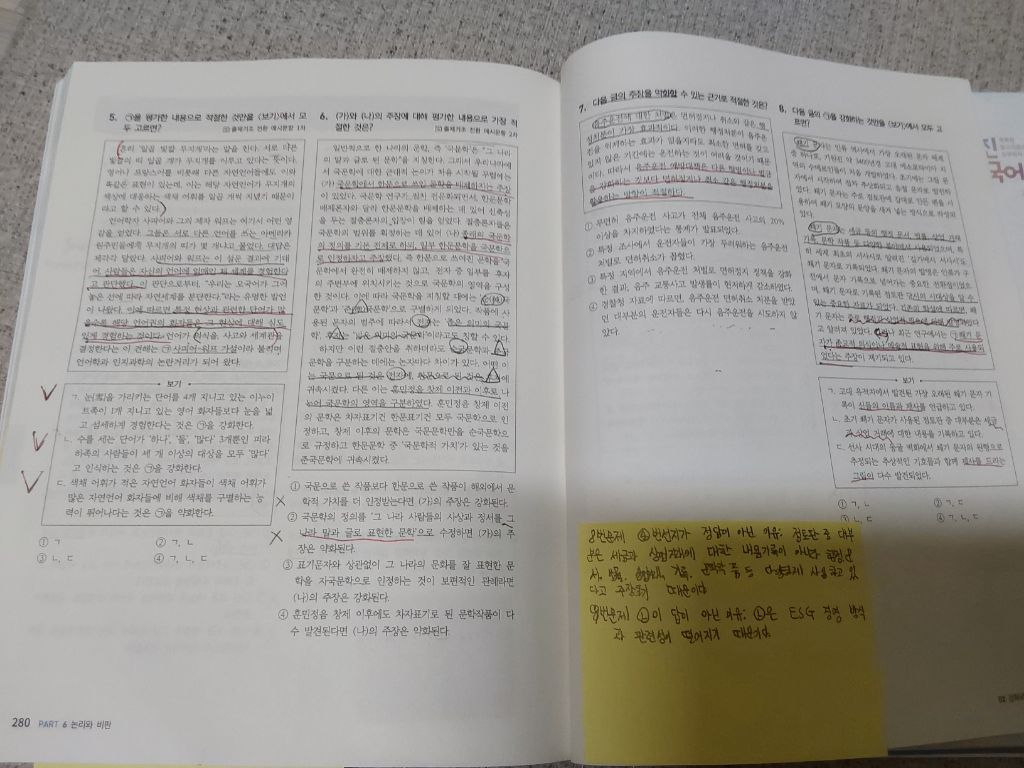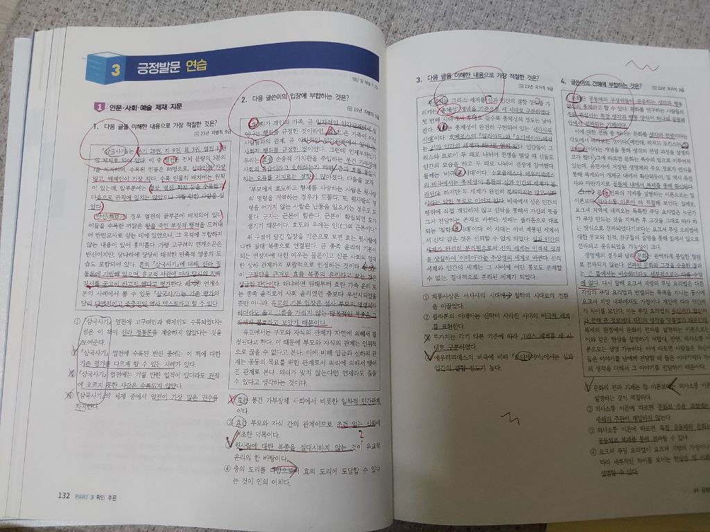 수업 나가기 전에 문제 풀면서 지문을 최대한 압축하는 방법으로 예습하고 강의 들으면서 선생님이 푸는 방식이랑 비교하는 방식으로 공부하고 복습할 때에는 틀린부분+워크북 위주로 복습하고 있습니다.