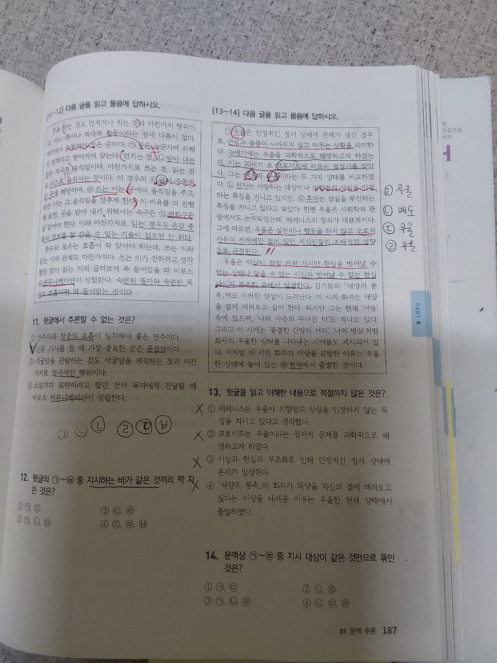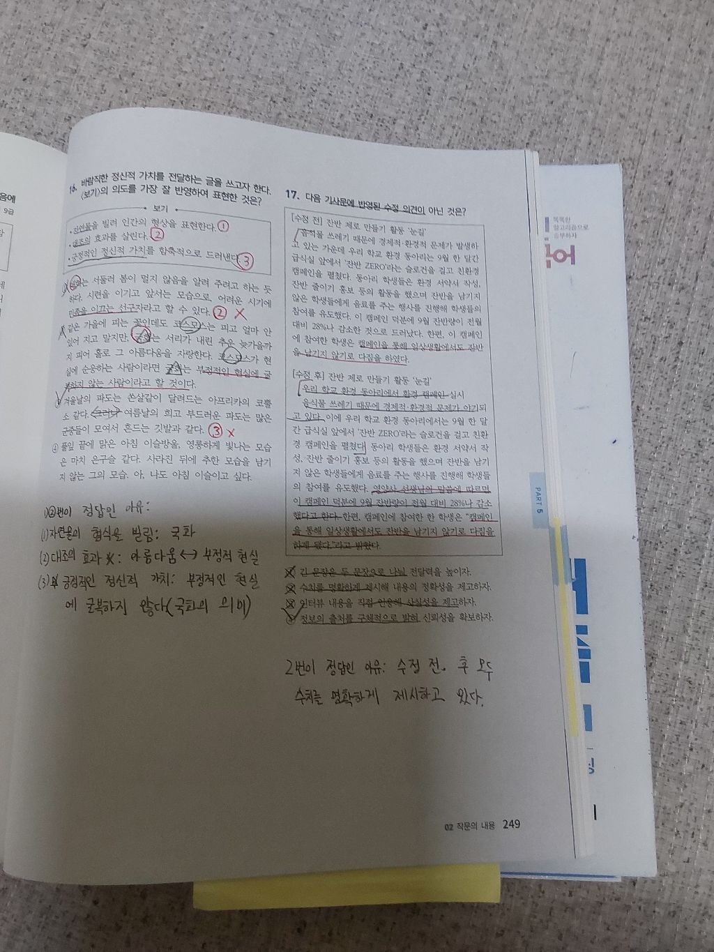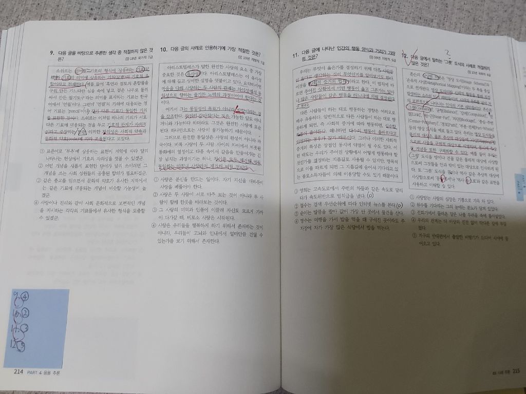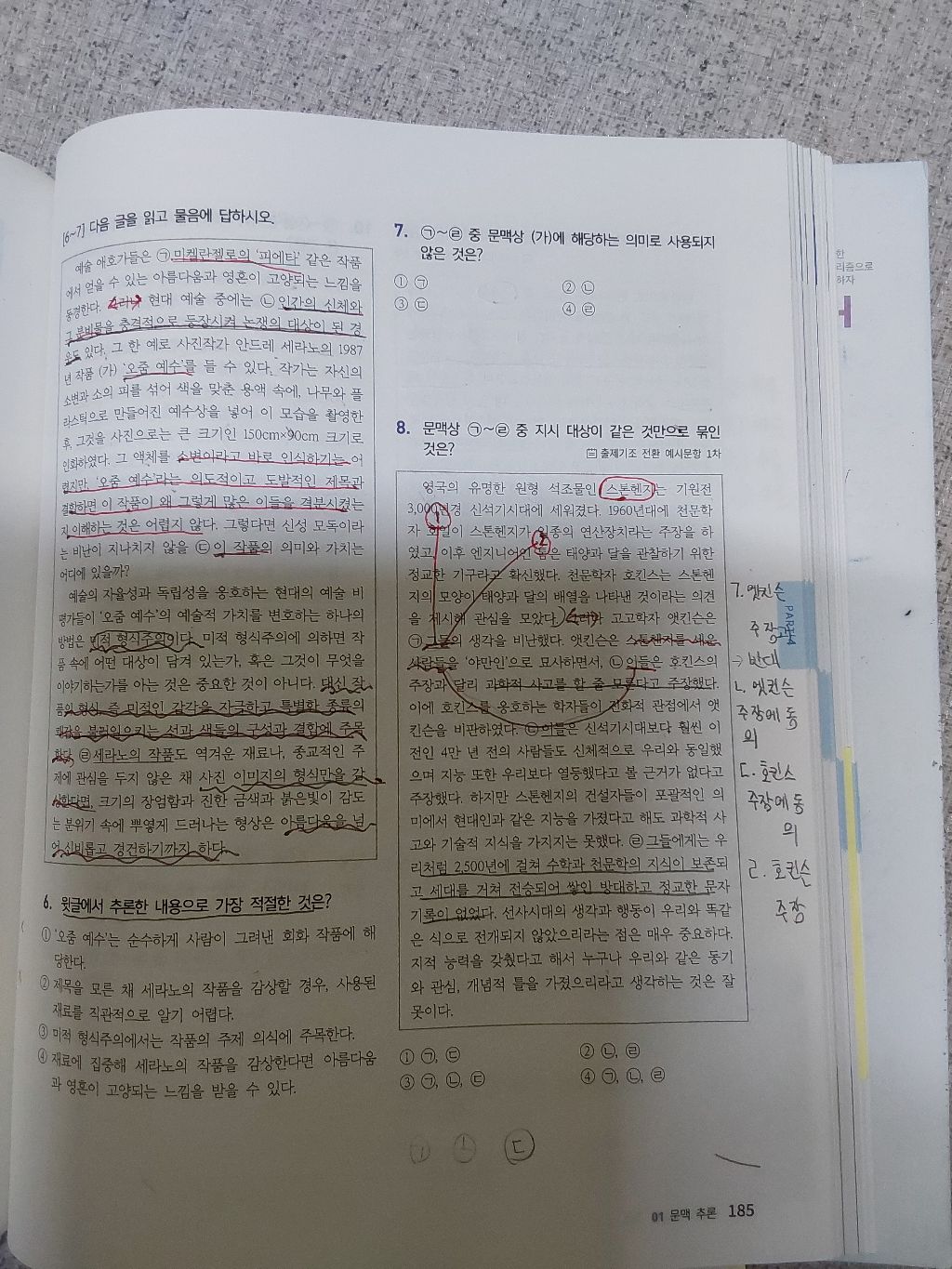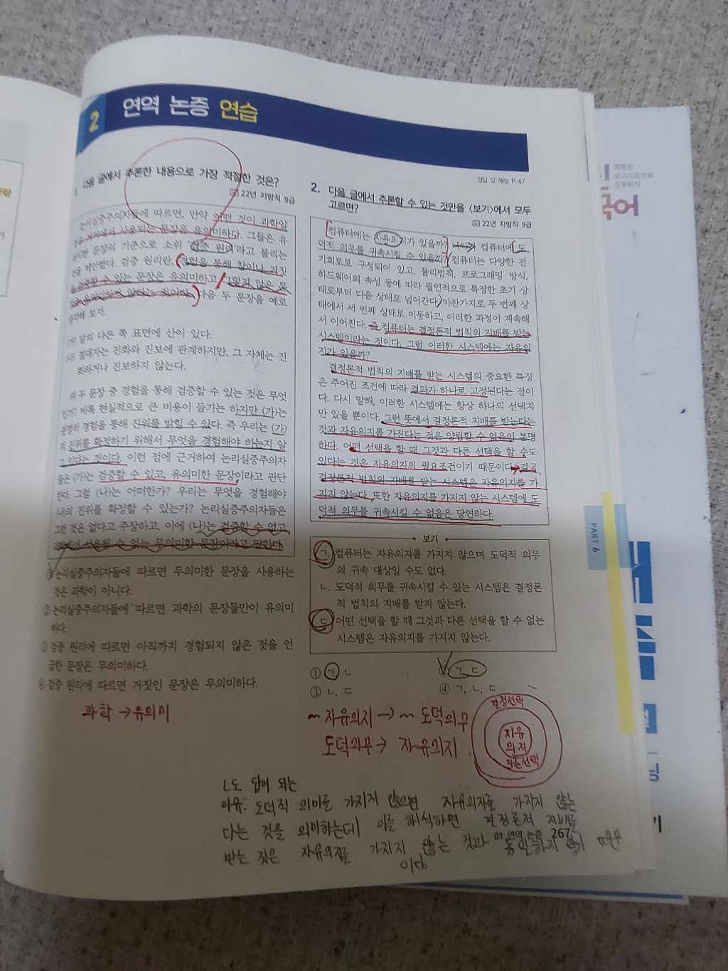 수업 나가기 전에 문제 풀면서 지문을 최대한 압축하는 방법으로 예습하고 강의 들으면서 선생님이 푸는 방식이랑 비교하는 방식으로 공부하고 복습할 때에는 틀린부분+워크북 위주로 복습하고 있습니다.
