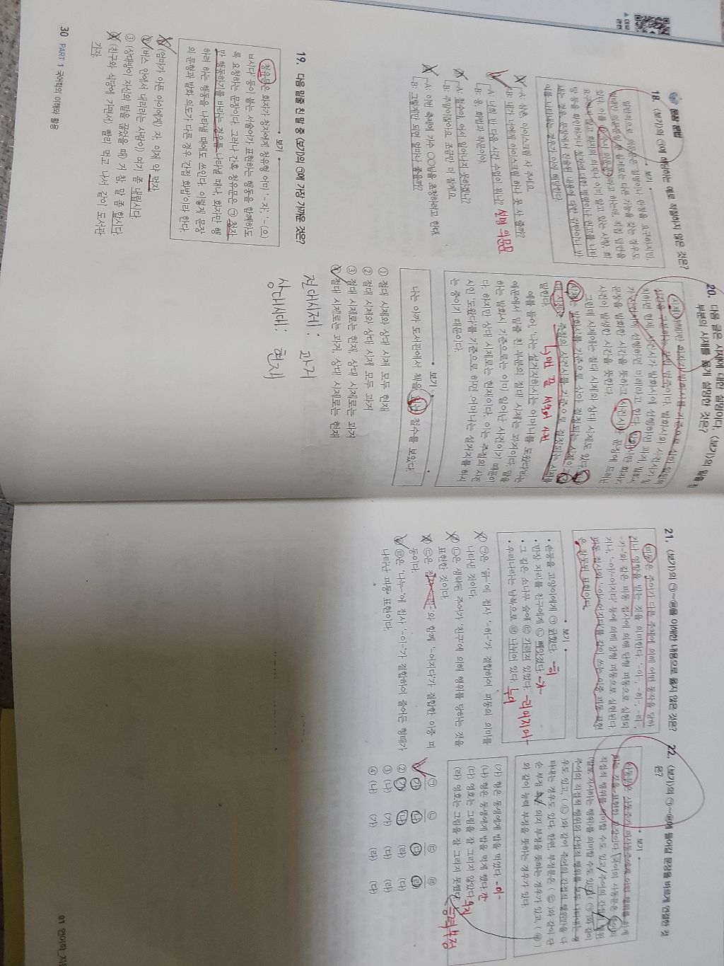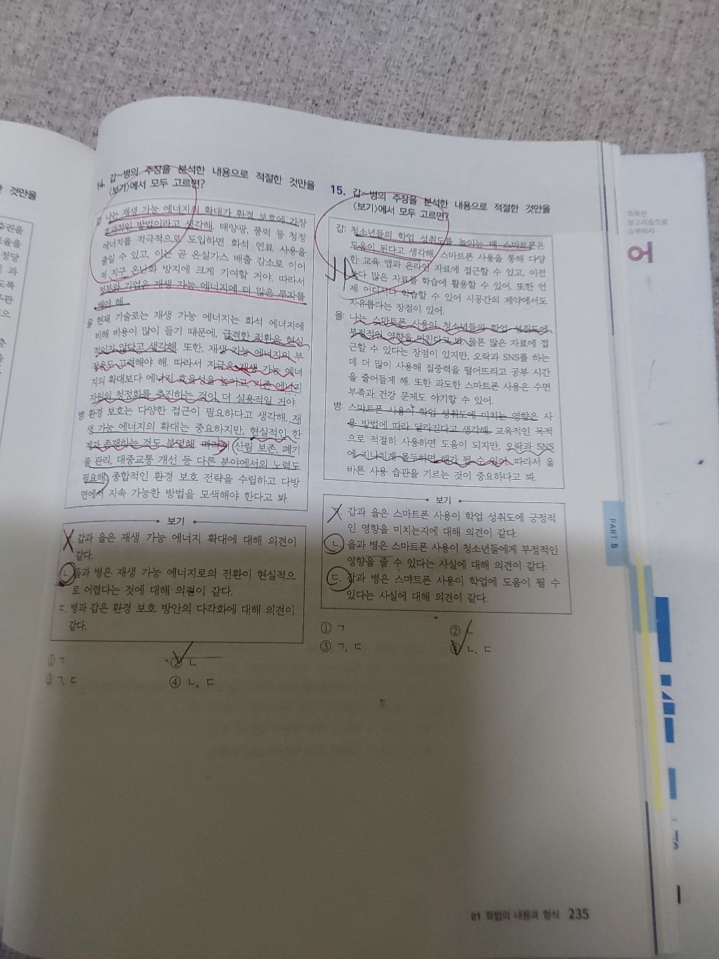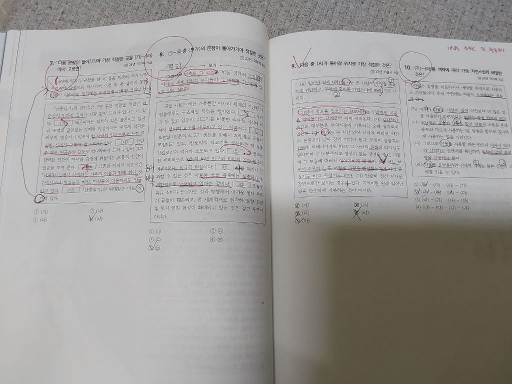 정답 체크 동그라미로 바꾸시고 오답 선지 소거를 정확하게 선지 원번호 위에 하셔요.
