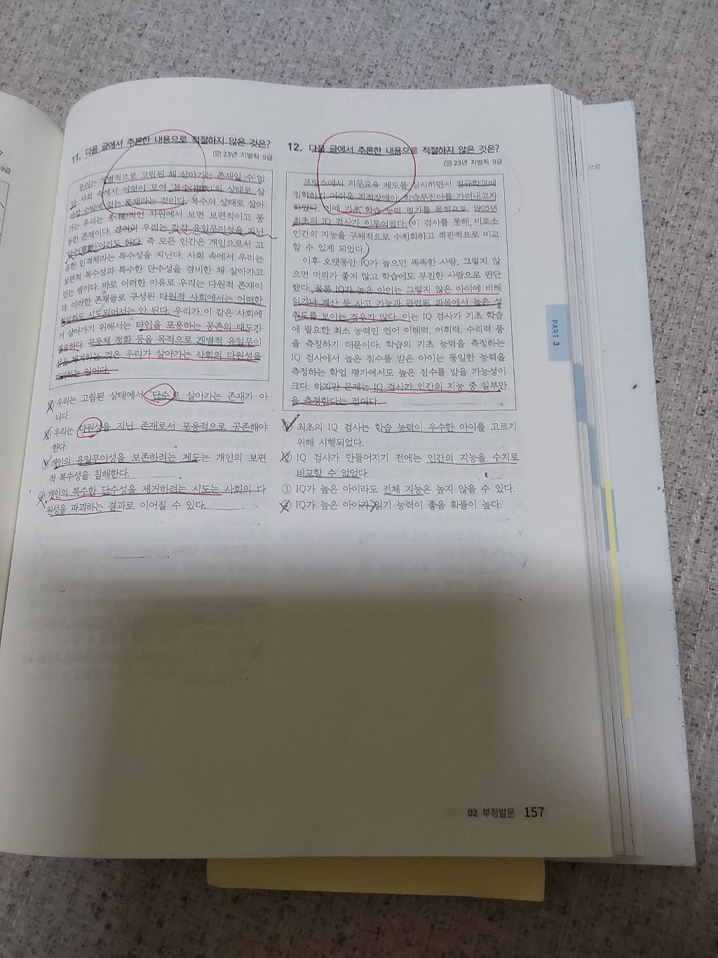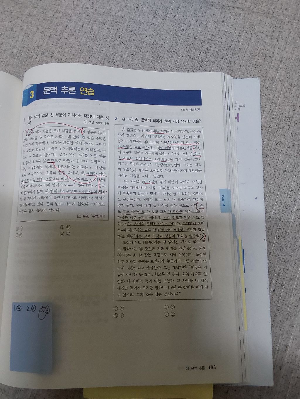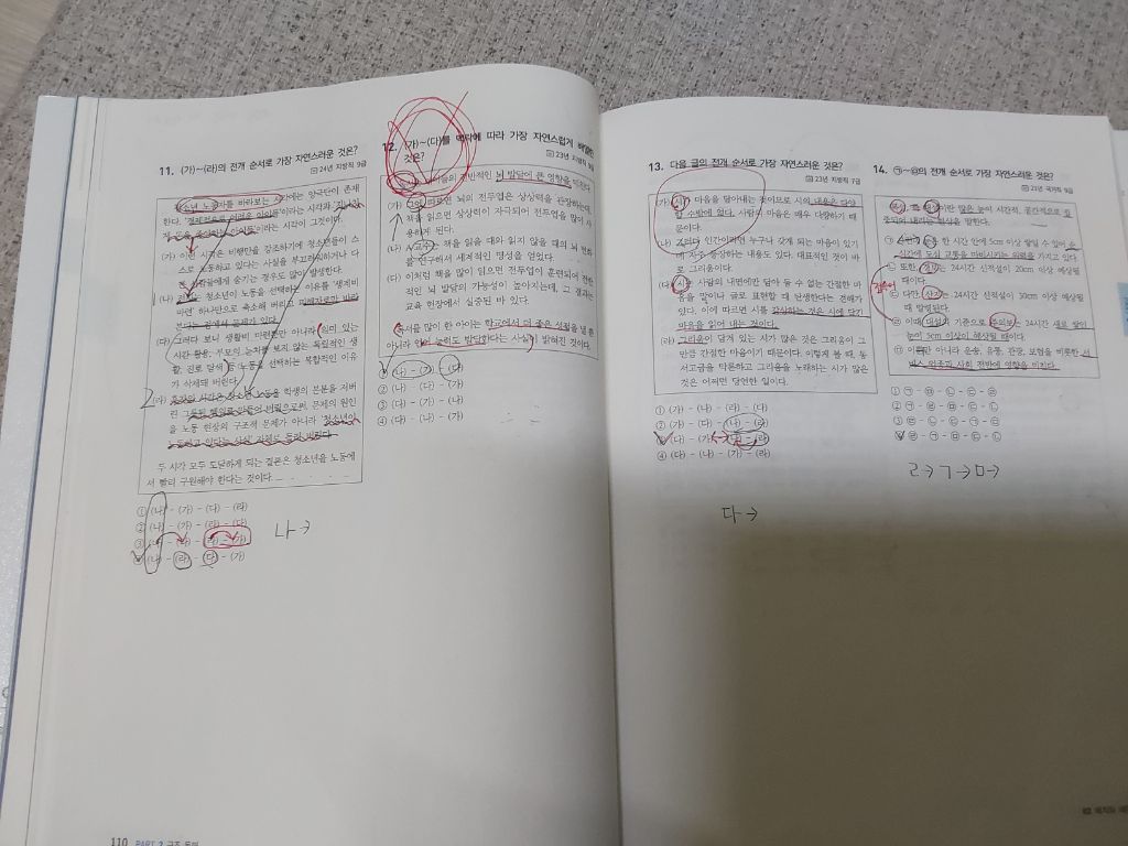 정답 체크 동그라미로 바꾸시고 오답 선지 소거를 정확하게 선지 원번호 위에 하셔요.