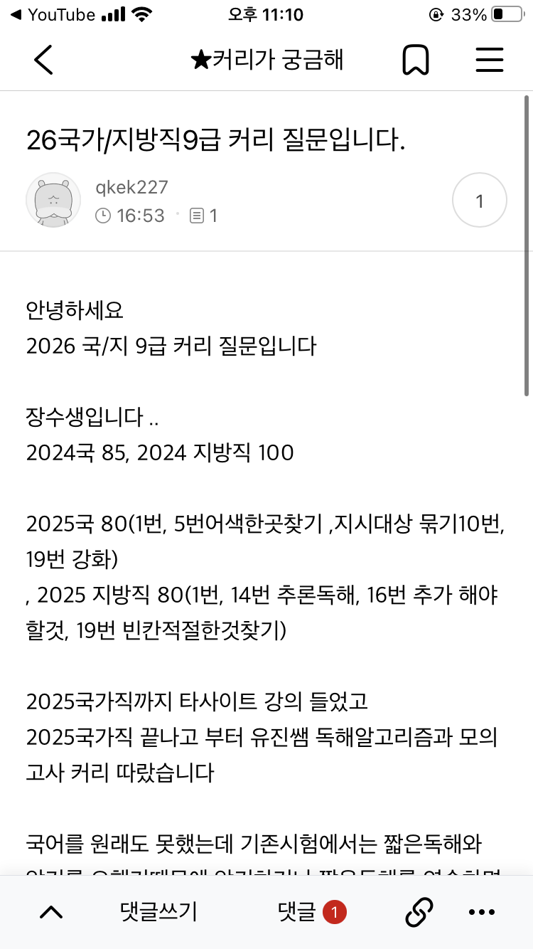 지방직 이후 지금까지는 일하느라 공부를 못했습니다ㅠ 지금부터 다시 시작하려하는데 커리에 대해 알려주시면 감사하겠습니다!!