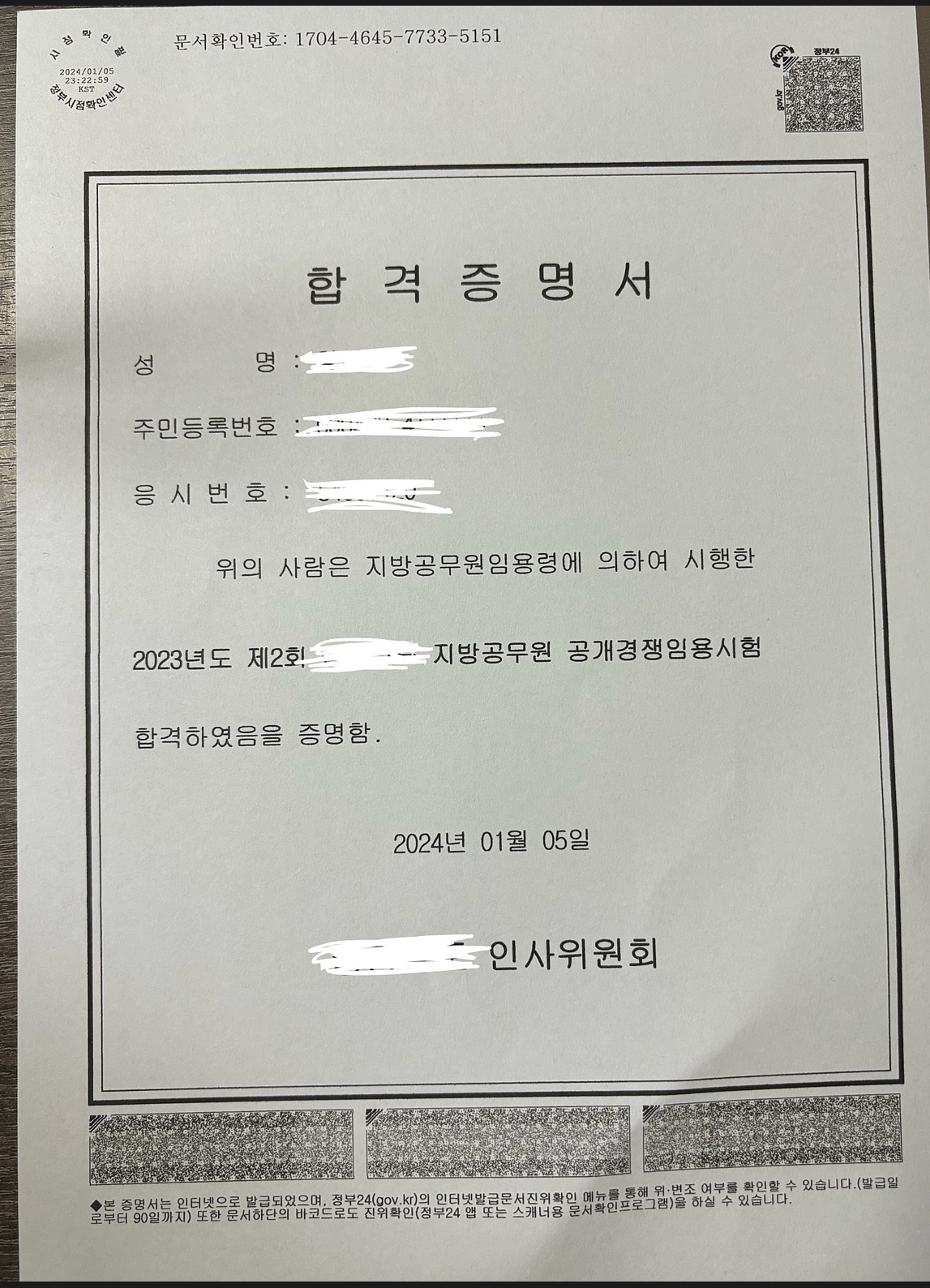 그런데 절대 놓지 않았습니다. 지금 놓으면 내년에도 똑같이 포기하게 될 것이라는 생각이 들어서 최선을 다했습니다. 위에 썼던 것처럼 끝까지 모르는 것들을 요약하며 정리했습니다. 시험장에서 나올 때까지도 붙을 거라고 생각하지 못했던 것 같습니다. ‘진인사대천명’을 마음에 새기면서 내가 할 수 있는 만큼 해보자고 생각했습니다.
