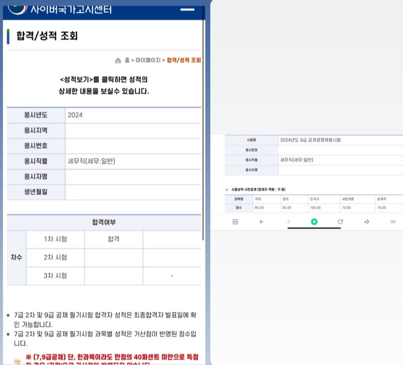 안녕하세요 2024 국가직 9급 세무직 국어 85점, 총점79점을 받은 재시생입니다.(마지막 사진 첨부)