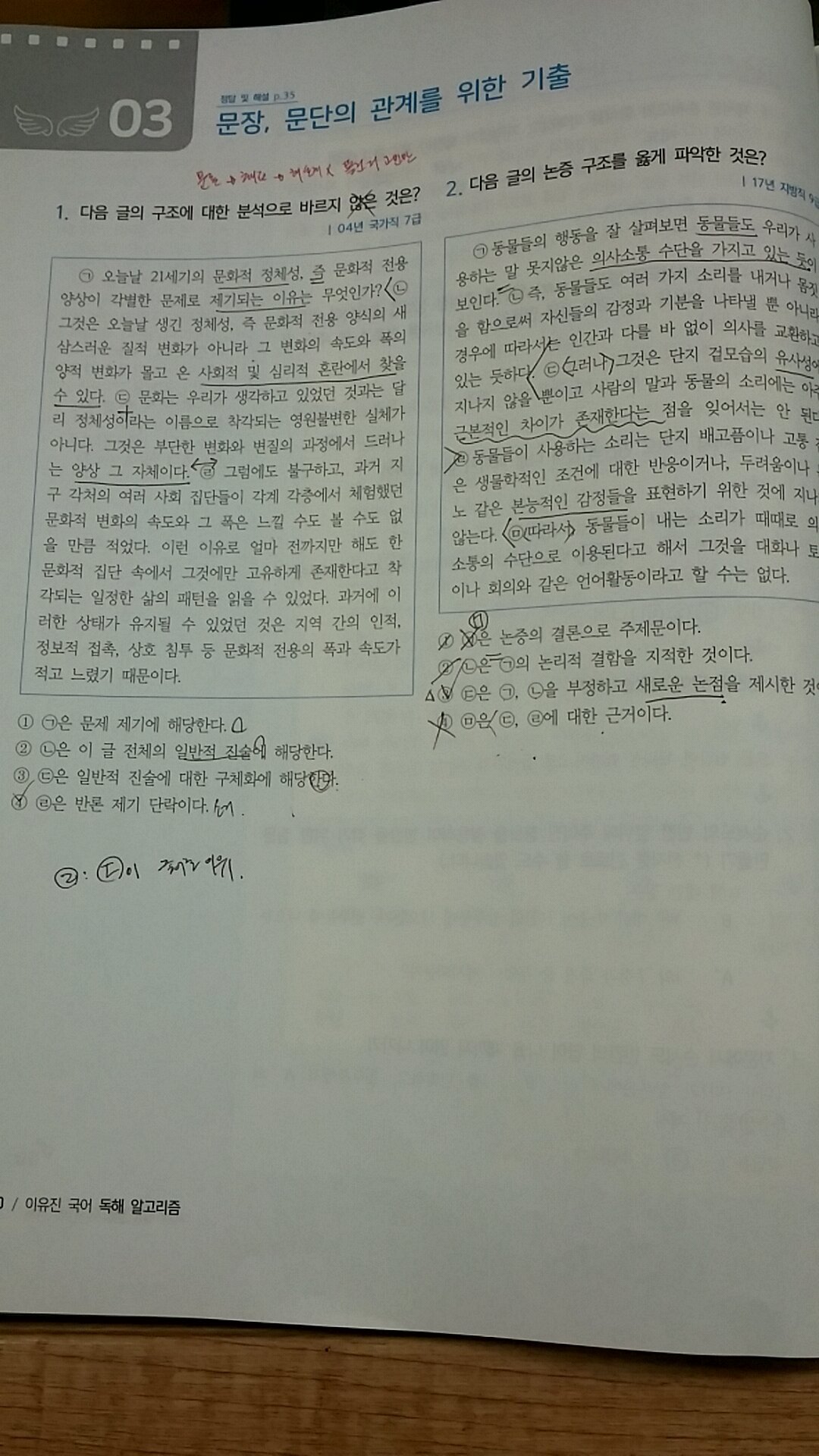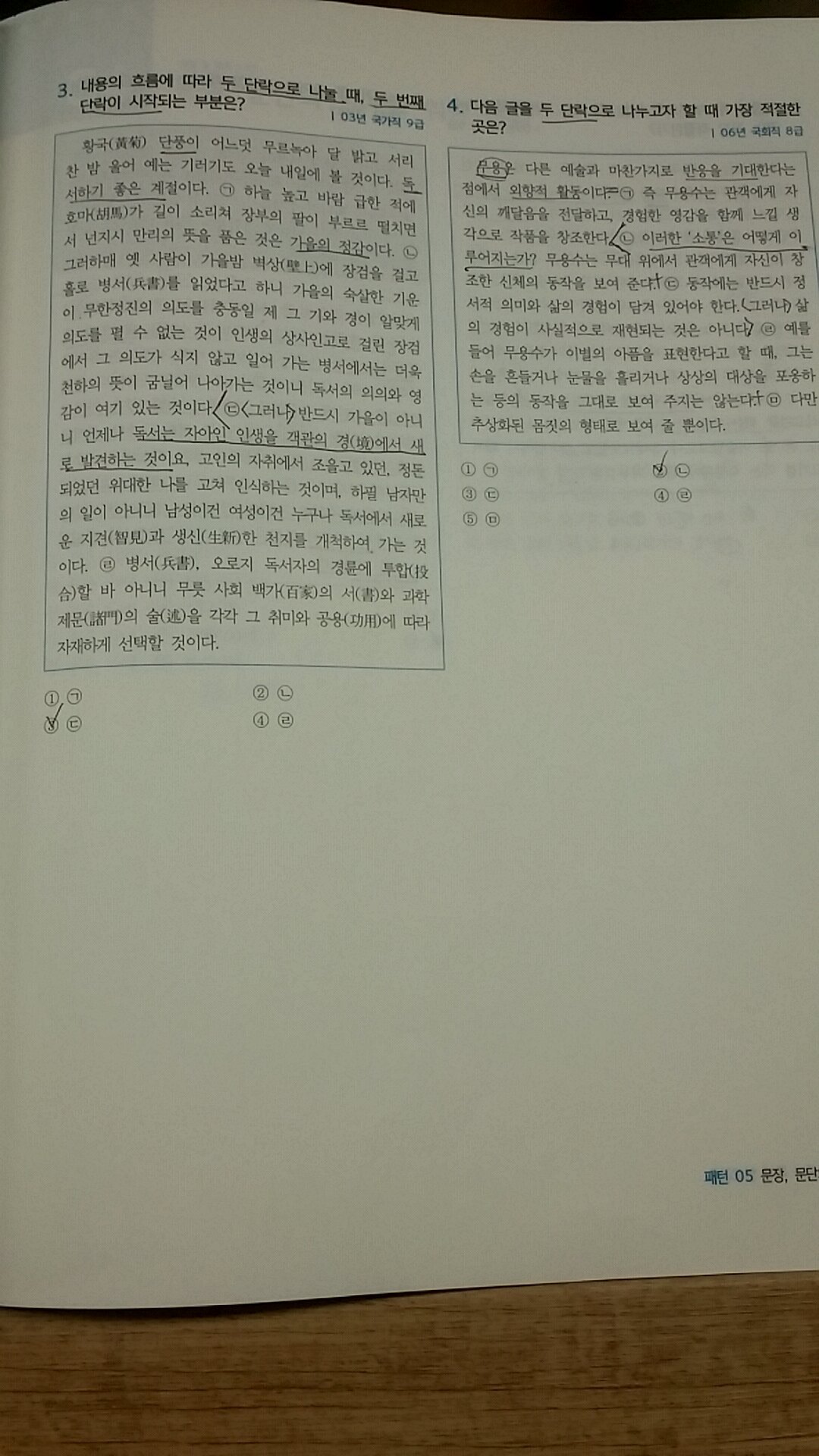 (한 문제를 풀면서 동그라미를 치지 않거나, 뒤늦게 2~3문장 읽으면서