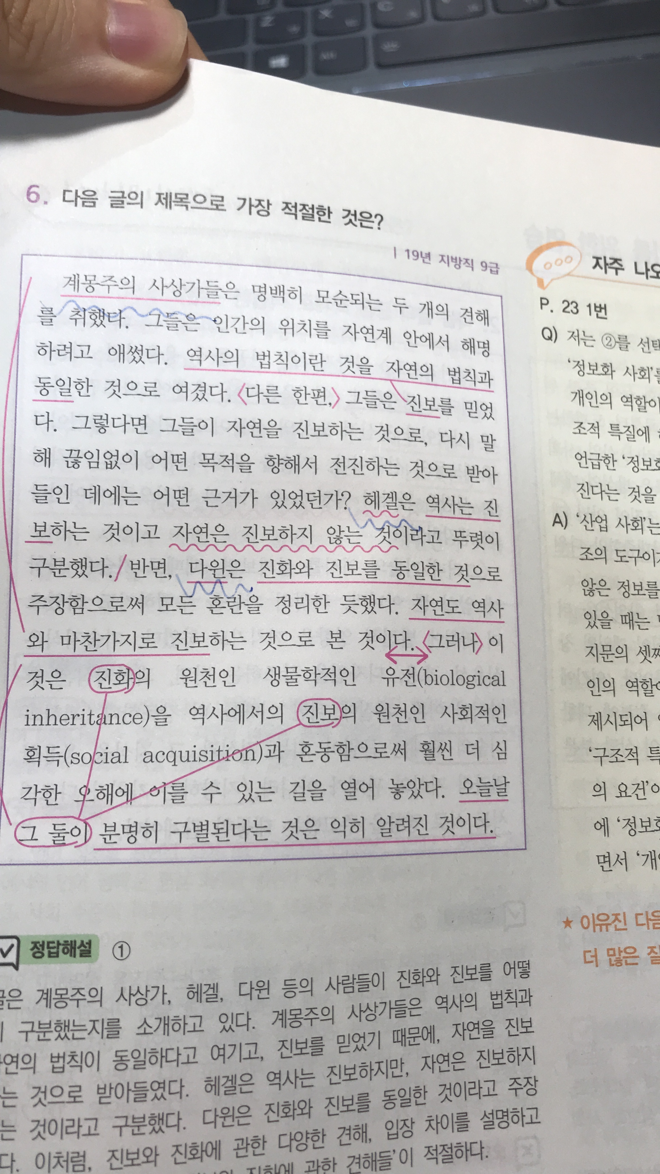 사람이름 펜터치 작성자펭현숙 귄가|작성시간21.08.05|조회수822 목록 댓글 2 글자크기 작게가 글자크기 크게가 아리스토텔레스와 니체가 나오는 지문에는 사람 이름에 펜터치가 안 되어 있고,계몽주의 사상가, 헤겔, 니체가 나오는 지문에는 사람이름에 펜터치가 되어 있더라고요. 두 지문의 차이를 모르겠습니다,, 어느 경우에 사람 이름에 밑줄을 긋는 건가요?? 알려주시면 감사하겠습니다! 다음검색 현재 게시글 추가 기능 열기 북마크 공유하기 신고 센터로 신고 댓글 댓글 2 댓글쓰기 답글쓰기 댓글 리스트 작성자진진 | 작성시간 21.08.06 사람 이름이라서 긋는 것이 아니라 사람 이름에 따라서 차별적 정보가 나와서 구별이 필요할 때 긋는 것입니다^^1번에는 아리스토텔레스와 니체의 기능이 다르지 않습니다. 6번에서는 사람별로 의견이 다릅니다. 작성자펭현숙 귄가 작성자 본인 여부 작성자 | 작성시간 21.08.06 감사합니다!! 댓글 전체보기