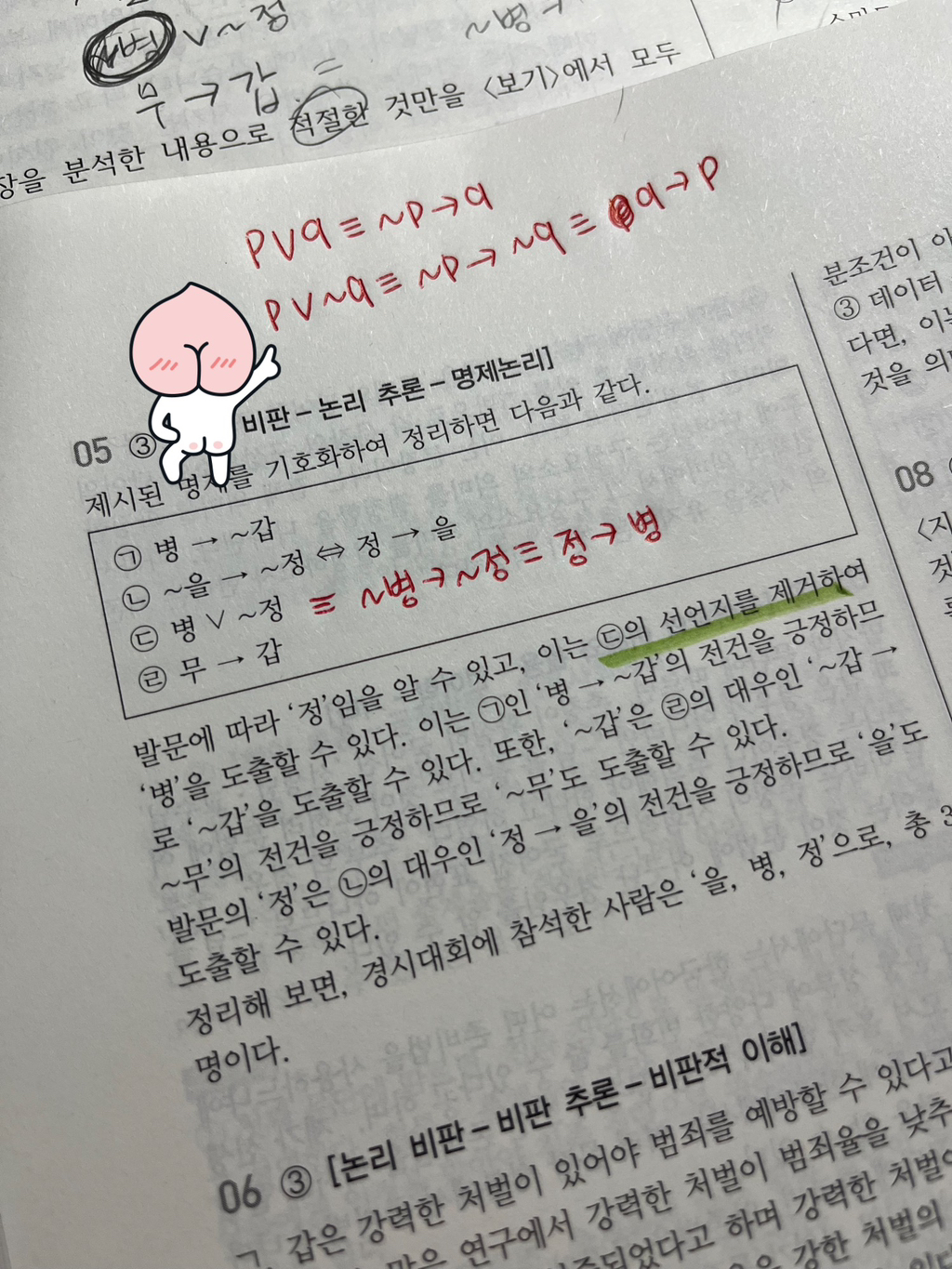 ⊙ 교재 이름 - 몇 페이지 몇 번인지 예시) 독해알고리즘 ○○ 쪽 ○○번 질문입니다.
