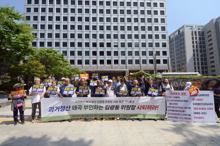 [서울=뉴시스]김래현 기자 = 국가폭력에 의한 인권침해를 입은 피해자와 관련 단체들은 16일 김광동 2기진실·화해를위한과거사정리위원회(진화위) 위원장이 진화위 설립 취지에 반하는 행보를 보이고 있다며 사퇴를 촉구했다.