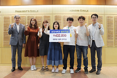지난 5월 대학 축제 행사에서 모은 수익금(432,000원)을 100주년 100억 장학기금으로 기부하였다.