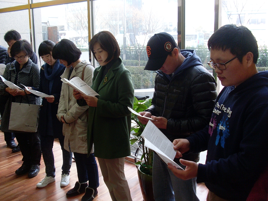 함께 둘러 서서 예배를 드렸습니다.