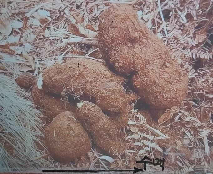 복령은 수맥이 있는데서 자랄 뿐 아니라 죽은 소나무 뿌리에 기생하여 자란 버섯으로, 겨울철에도 낙엽을 헤치고 캘 수 있다.