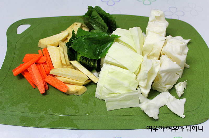 깻잎20장,양배추취향껏,고구마1개,당근 1/3개