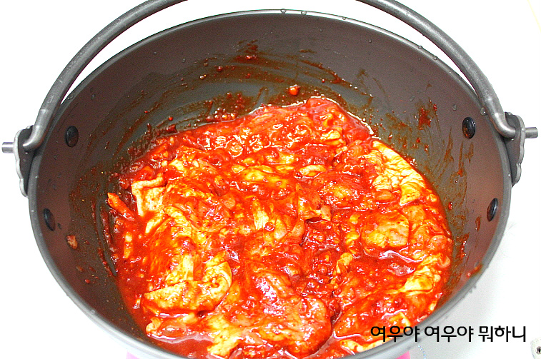 양념재운 전골냄비에서 그대로 조리하면 되는데요
