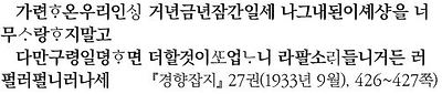 이 시와 비슷한 내용, 다짐은 남상교가 쓴 한글 가사 ‘경세가’에서도 찾아볼 수 있다.