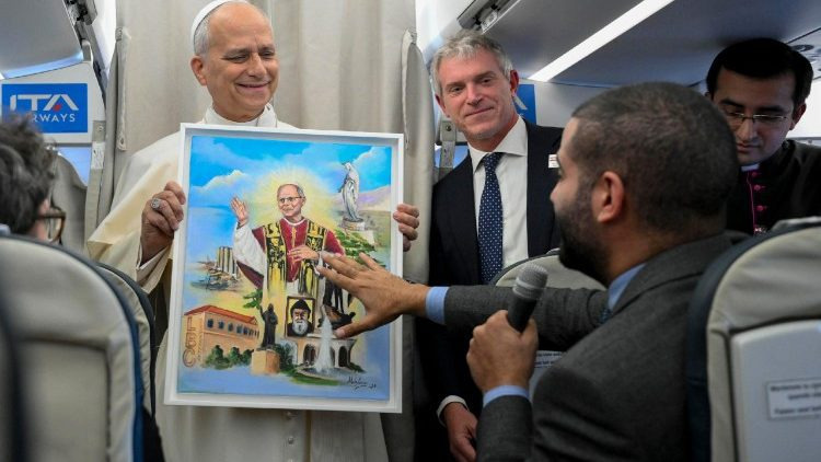 레바논에서 로마로 돌아오는 교황 전용기 안에서 교황 레오 14세는 평화 협상에 있어서 뒤에서 활동하며 모든 당사자가 무기를 내려놓도록 하는 성좌의 역할에 대해 기자들과 이야기를 나누었다. 우크라이나 사태와 관련해 교황은 유럽의 개입과 이탈리아가 수행할 수 있는 중요한 역할을 강조했으며, 자신의 선출 소식에 어떻게 반응했는지에 대한 질문에 답하며 자신의 삶을 하느님께 바치고 그분께 “길을 인도해 주시도록” 맡기는 것의 중요성을 강조했다.