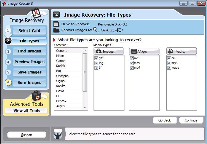 2번째는 복구할 파일의 타입을 고르는건데요.