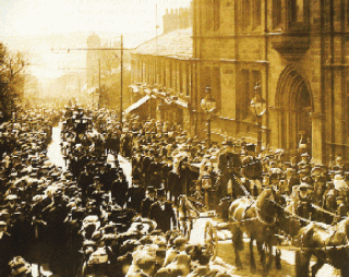 1912년 5월 18일, 웰레스의 장례식 행렬. 당시 신문은 그를 추모하기 위해 몰려든 약 4만명 이상의 인파들을 가리켜 "상상을 초월한 장관(pageantry beyond belief) 을 이루었다"고 보도했다.