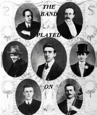 중간줄 왼쪽부터 : G. Krins, Wallace Hartley, Theodore Brailey