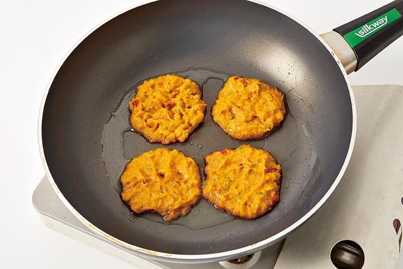 참치, 홍고추, 풋고추, 부침가루(12컵), 소금(0.5)을 넣어 섞고,