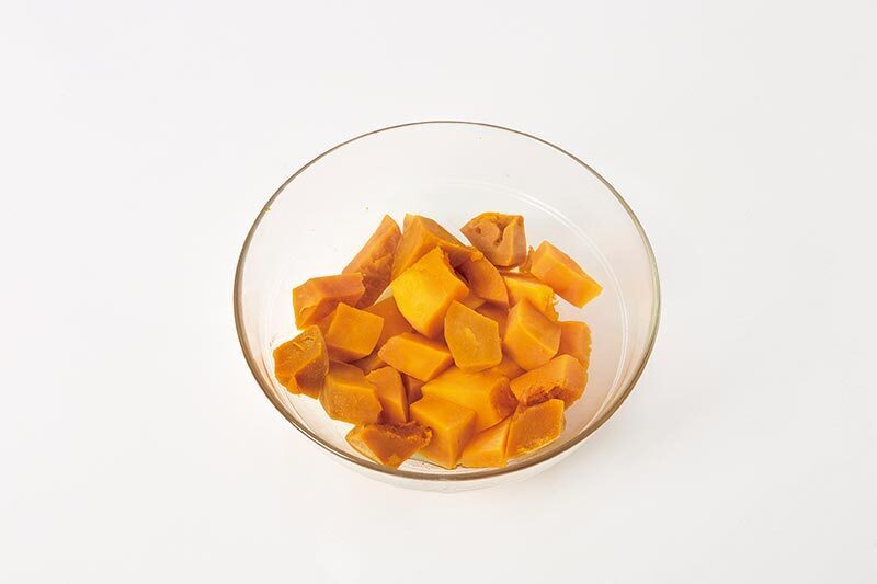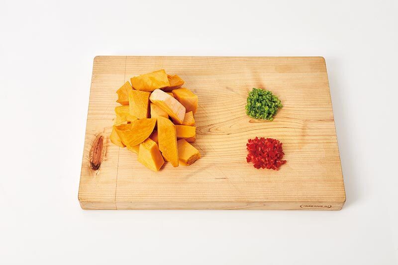 늙은 호박은 껍질을 제거해 씨를 파낸 뒤 한입 크기로 썰고,