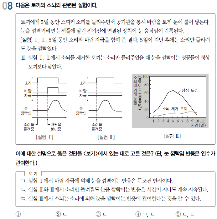 해설지에 보면 '중뇌는 동공 반사, 눈 깜빡임 반사에 관여하는데, 바람 자극에 의해 눈을 깜빡이는 반응은 연수의 무조건 반사에 해당한다.'라고 되어 있는데, 눈 깜빡임이 중뇌 반사에 의해 일어날 때와 연수 반사에 의해 일어날 때는 어떤 차이가 있을까요? 외부 자극 없이 눈을 깜빡이면 중뇌 반사, 외부 자극에 의해 눈을 깜빡이면 연수 반사 이렇게 생각해야 하는 건가요?
