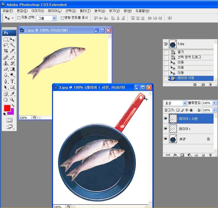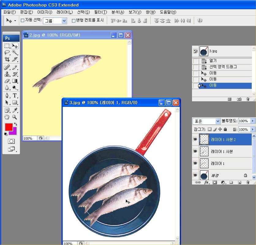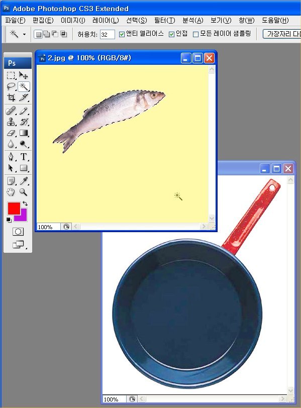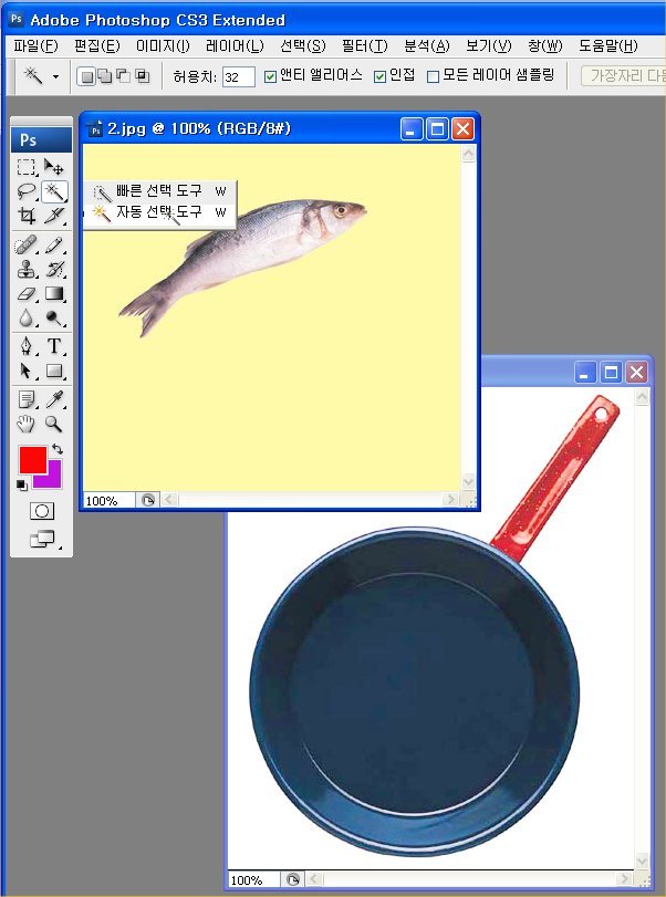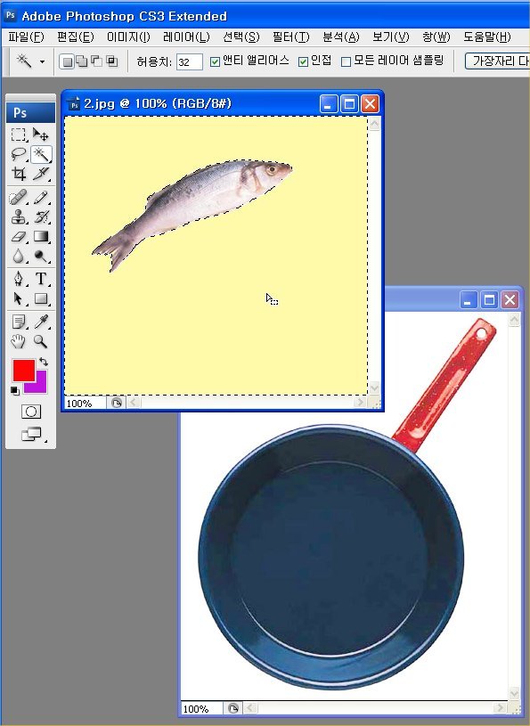 1. 2개의 이미지를 열어 편집할 준비를 합니다.