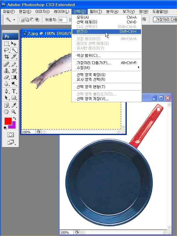5. 영역이 반전되어 생선이미지만 선택됨을 알 수 있습니다.