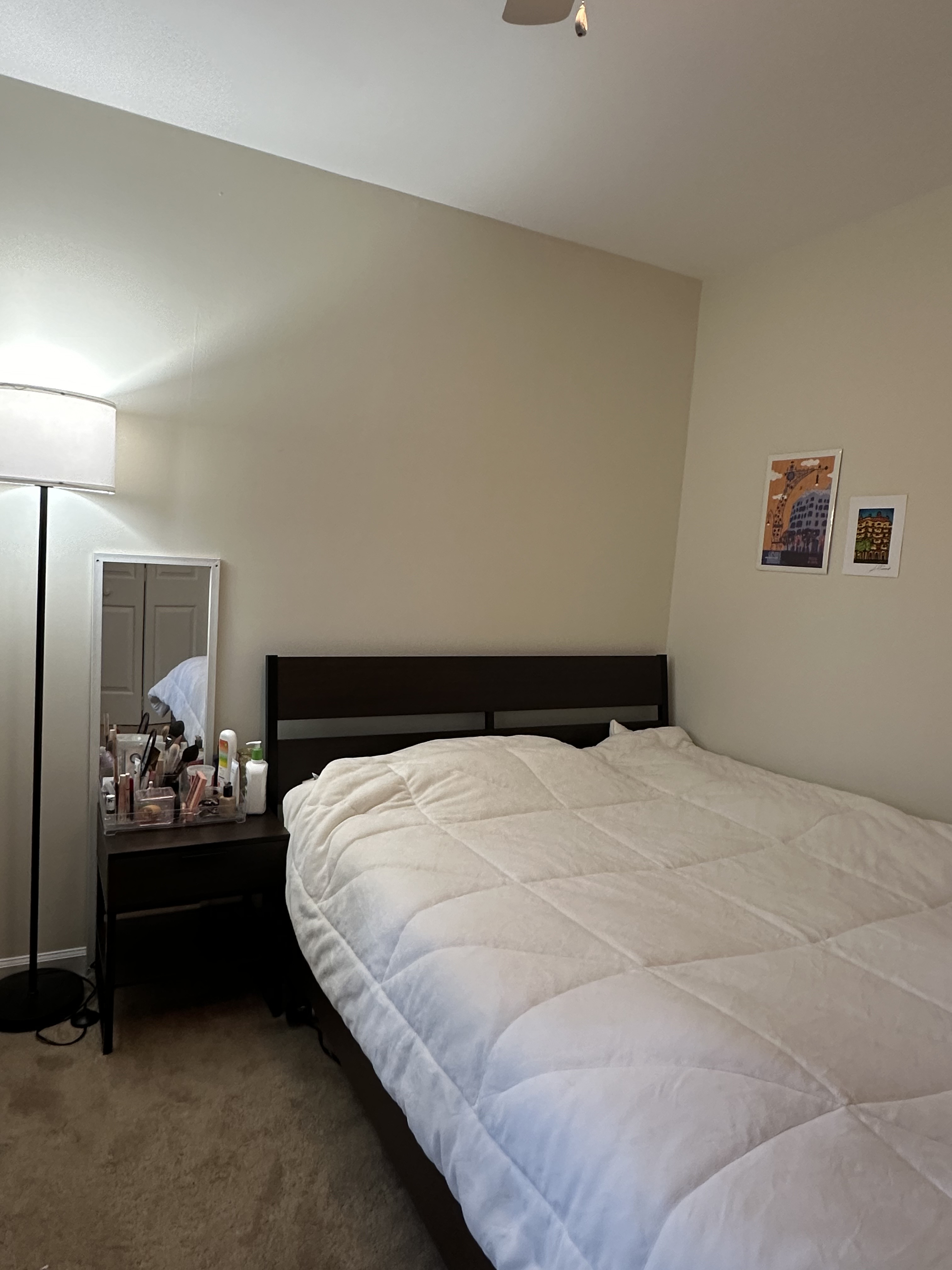 – Bedframe+headboard+mattress+mattresscover+nightstand + standing lamp +table lamp= $160 (discounted)