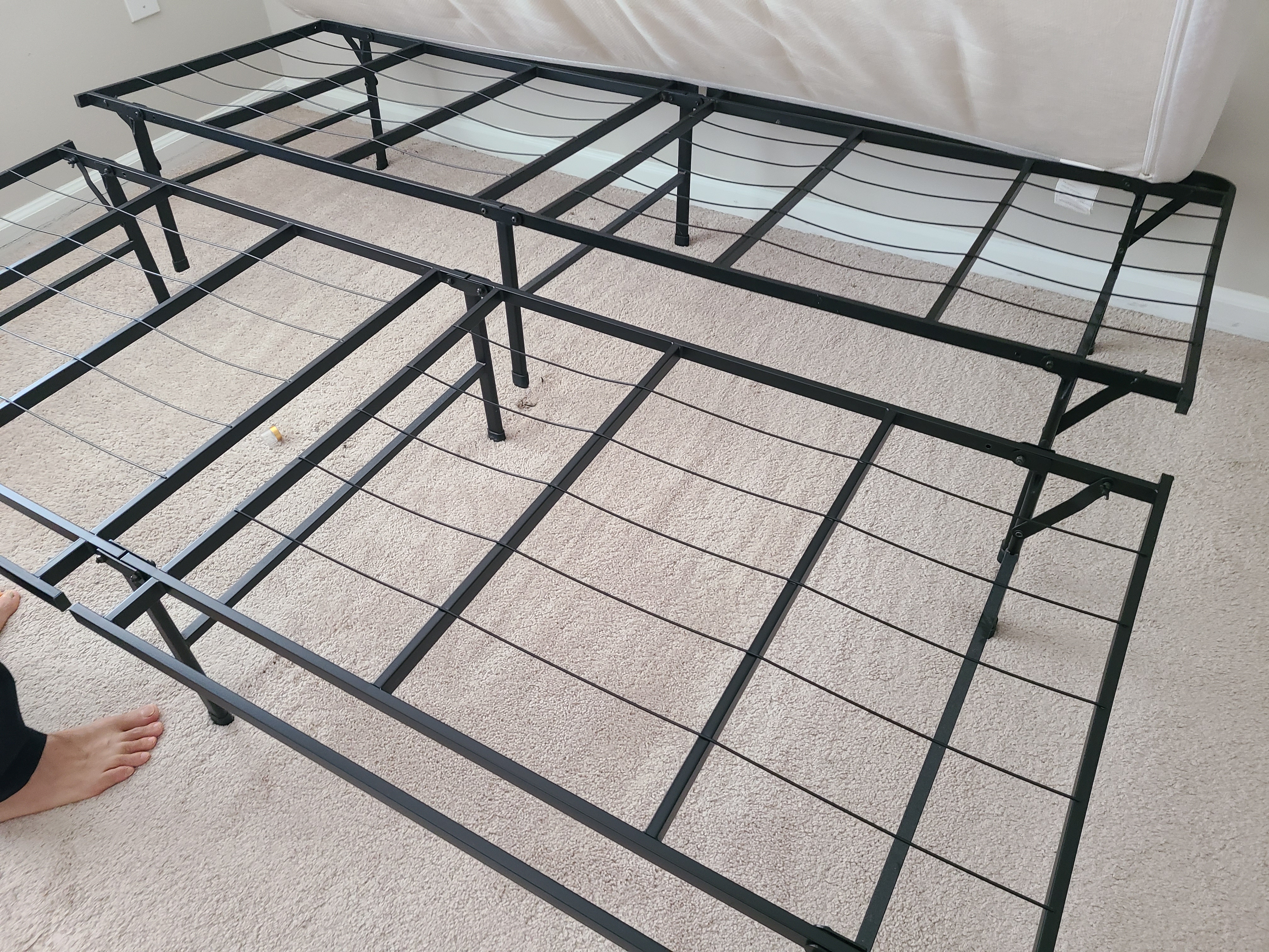 프레임은 두개로 분리가 되고 반으로 접어져서 옮기기 편리합니다.