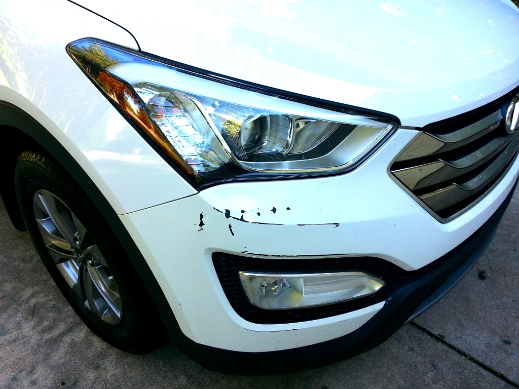 사고는 주차장에서 앞 범퍼 모서리를 긁어서 페인트가 약간 벗겨진 부분이 있는데요 경미합니다.