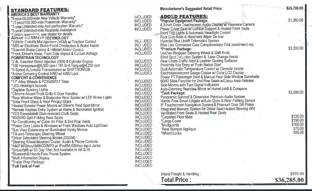 추가 $915달러 내려드려서 판매가격을 22,000 달러로 하겠습니다.