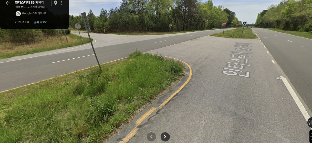 아무튼 위의 route 와 같이 시험을 보고 오게 되었는데, 몇가지 특이사항은. #1. DMV 주차장 내의 도로가 아래와 같이 차선이 모두 지워진 상태라 제가 당연히 1차선인지 알았으나, 2차선이었으며 (차선이 지워진.) 우측차선으로 가지 았았다고 지적을 받았으며.. #2. DMV course는 모두 50MPH limit 으로 (외곽에 있어 35MPH 구간이 없었습니다) 시험관은 limit 가 50이라도 교통량이 적고 다른 차가 모두 고속으로 달려 at least 50 MPH로 밟으라고 지적이 있었고 (이전 DMV review 에서는 limit 보다 높으면 탈락이라는 이야기가 있어 조심하여 운전하였으나.. 이곳은 분위기가 반대였습니다)