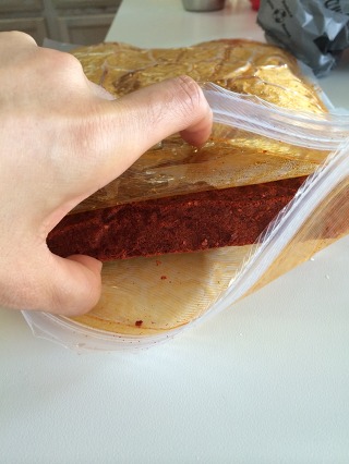 주의)고춧가루가 저렇게 고형카레처럼 딱딱해 져 버렸습니다. 지금 쓸 때도 가위나 칼로 찔러 겨우 쓰네요-.,-