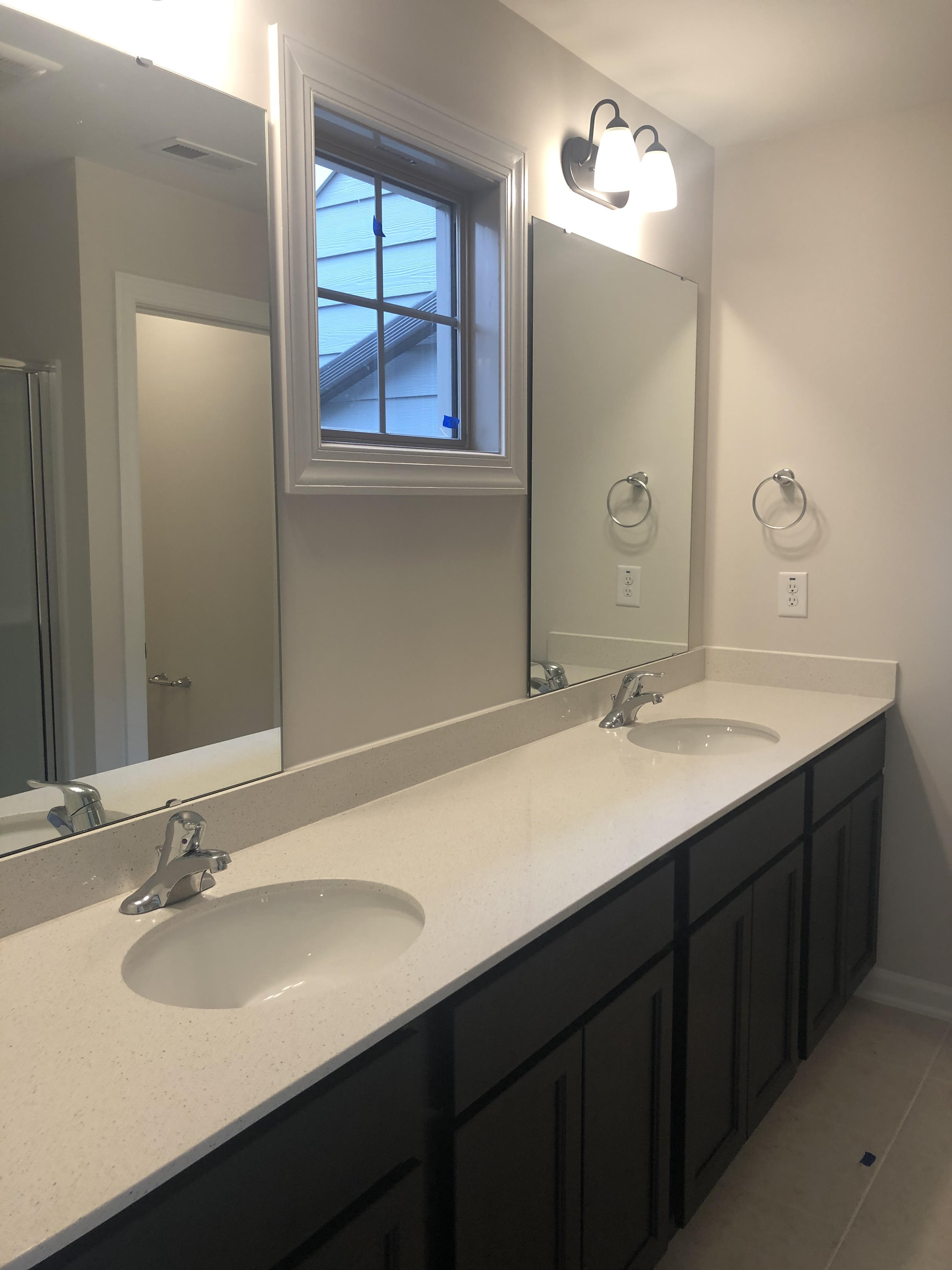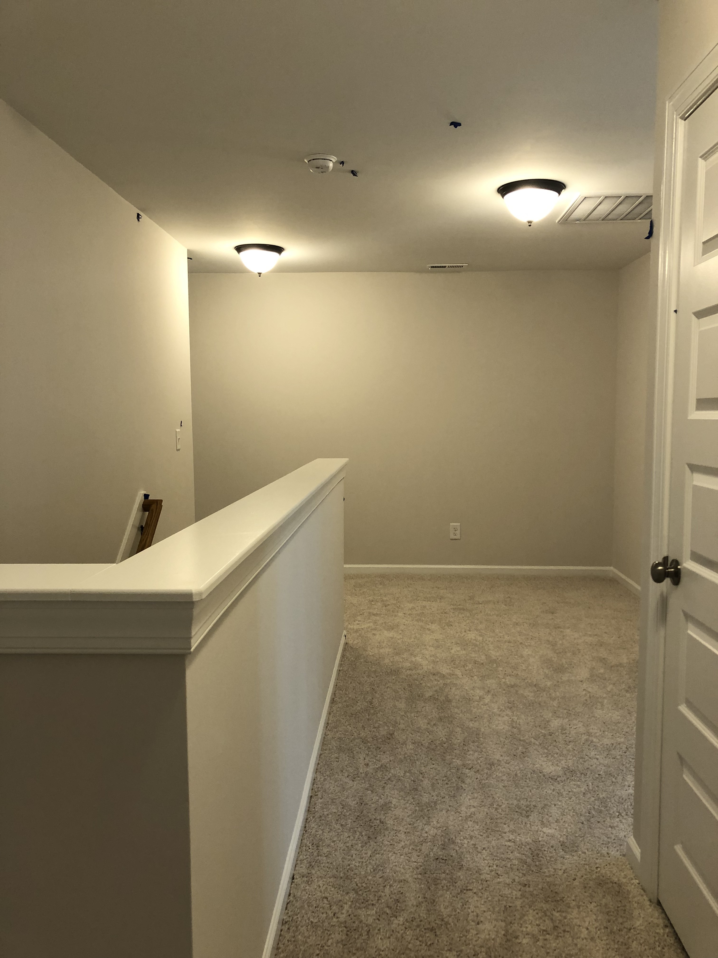 3 Bed, 2.5 Bath, 2 Car garage가 있는 2층집이고 1층 마루바닥, 2층 카펫입니다.