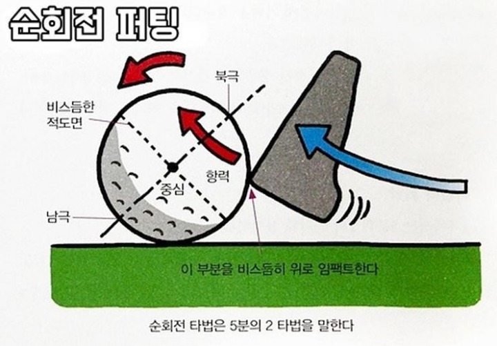 퍼팅에서 정말 성공하고 싶다면 톱스핀을 만드는 임팩트를 구사 하시는 것이 바람직합니다.