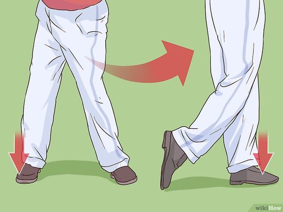 사진과 같이 백스윙 탑에선 오른발이 땅을 밟고 다운스윙시 지면 반발력을 이용하여 왼발로 중심이동을 해줘야 된다. 상체의 과도한 힘으로 공을 타격하려는 이유로 하체의 움직임을 둔화 시키므로 하체에 더 신경을 써야 된다.