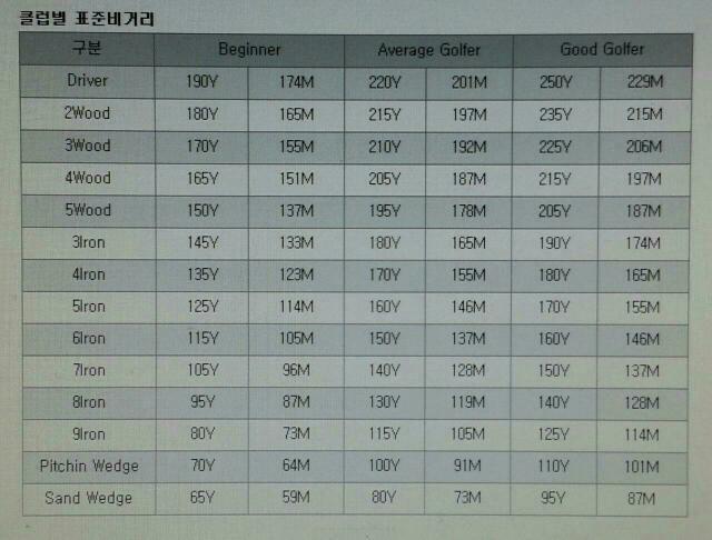 클럽에 따라 거리의 차이가 있다.