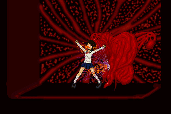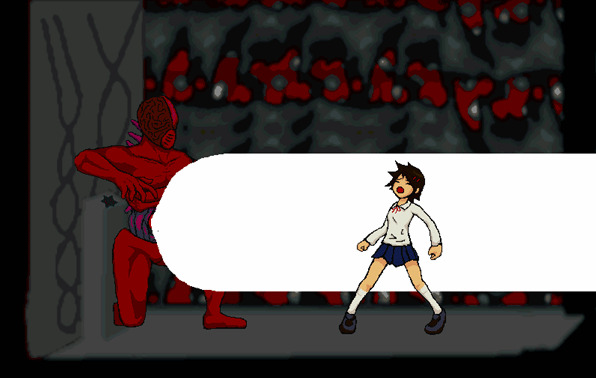 사쿠리는 토사물을 게워내고 사탄은 그런 사쿠리를 끔찍하게 살해합니다