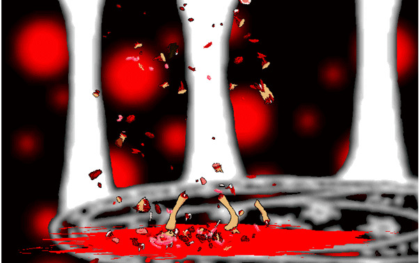 조각조각 찢겨진 몸이 출구앞에 날아옵니다