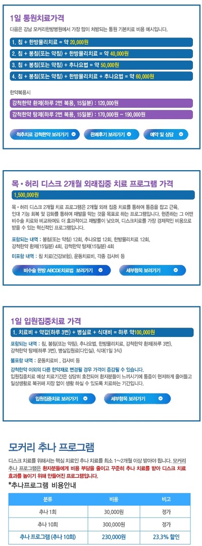 모커리한방병원에서는 투명한 진료와 치료를 위해 금액을 공지하고 있습니다.