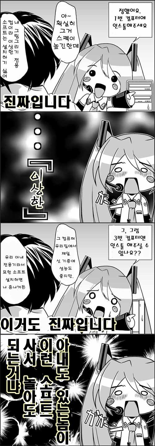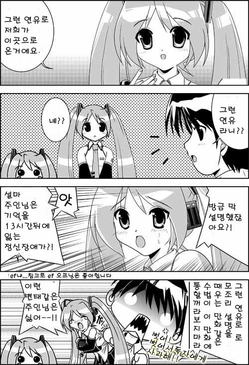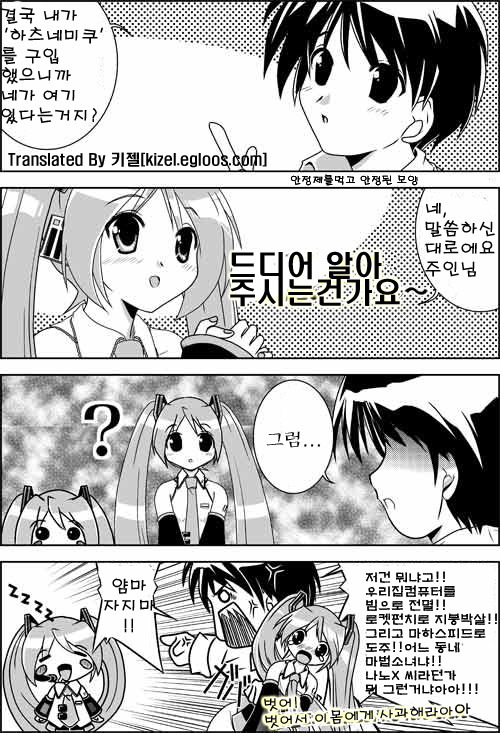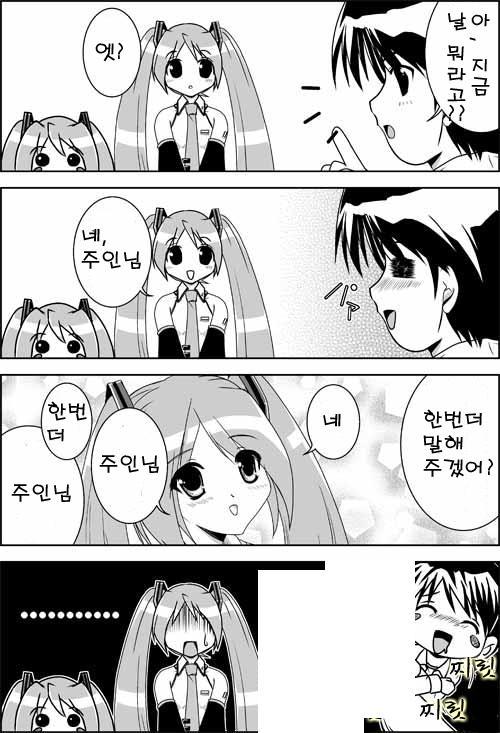 ㅋㅋㅋㅋ 뭔가요...... 저 하츠네미쿠(같은것)은 음냐..... 그보다 하악...... 미쿠가 '주인님~'이라니 흑흑 저도 듣고 싶어지는군요........ 주인님 소리를...... 흐흐흐.....