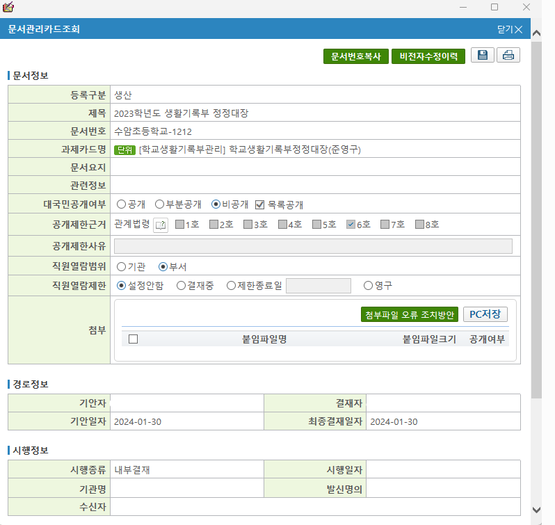 학년말에 '2024학년도 생활기록부 정정대장'으로 비전자문서를 등록해야하는 것 같은데