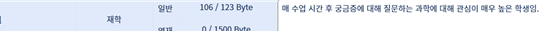 학생2는 1학기 123바이트가 남아 있어 한줄정도 입력하였습니다.