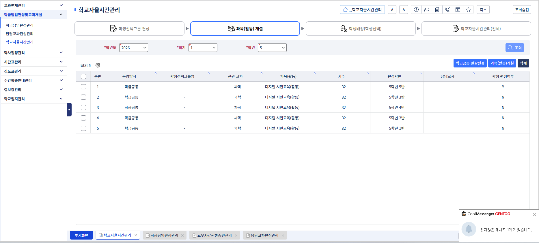 ** 학교자율시간관리-
