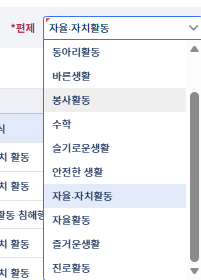 교육과정 편제에 2015교육과정이 남아있어요 작성자ggar|작성시간26.03.16|조회수52 목록 댓글 2 글자크기 작게가 글자크기 크게가 교육과정 편제에 자율자치활동 밑에 또 자율활동이 있고, 봉사활동과 같이 2022개정에는 사라진 교과가 남아있습니다. 이런경우 어떻게 해야하나요? 다음검색 현재 게시글 추가 기능 열기 북마크 공유하기 신고 센터로 신고 댓글 댓글 2 댓글쓰기 답글쓰기 댓글 리스트 작성자김소연 | 작성시간 26.03.16 안녕하세요?1~4학년은 2022개정교육과정 적용으로 자율자치활동으로 영역명이 변경되었습니다. 단, 5~6학년은 2015개정교육과정 적용을 받으므로 그대로 자율활동으로 나타납니다. 답댓글 작성자김소연 | 작성시간 26.03.16 [추가] 학년 혼합 동아리부서(자율동아리 포함) 운영 시 1~4학년과 5~6학년 학생은 적용 교육과정이 달라 동일 부서 편성이 불가합니다.(2026. 상반기 나이스 교무업무 사용자 설명서 p.157) 댓글 전체보기