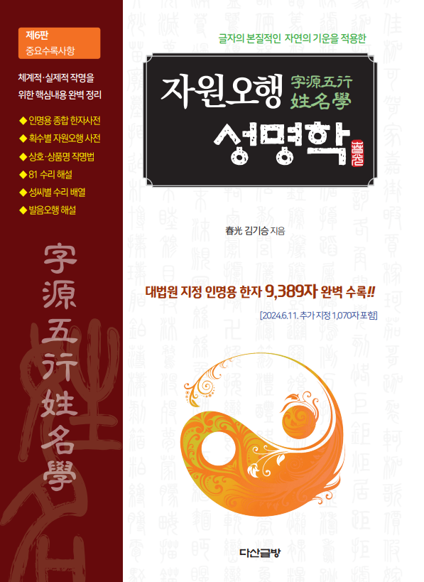 이번 6판은 2024년 대법원 발표한 인명용한자를 완벽하게 수록한 최초의 책입니다.