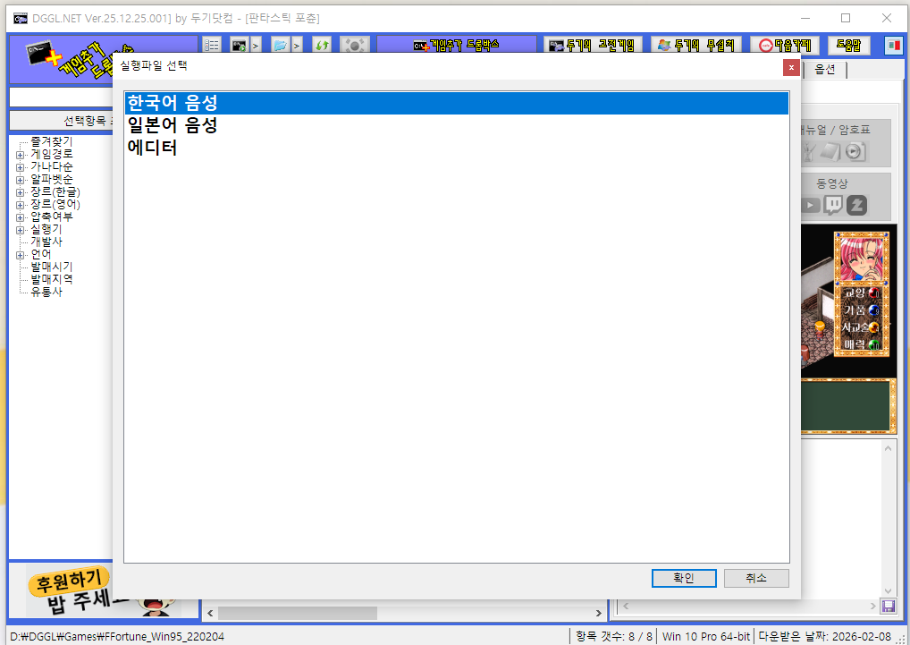 판타스틱 포츈을 실행했을 때 나오는 한국어 음성, 일본어 음성 중 선택하는 창에서