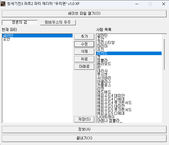 요 에디트는 그냥 파티인원만 추가 해주는 그런 에디터 인가요?