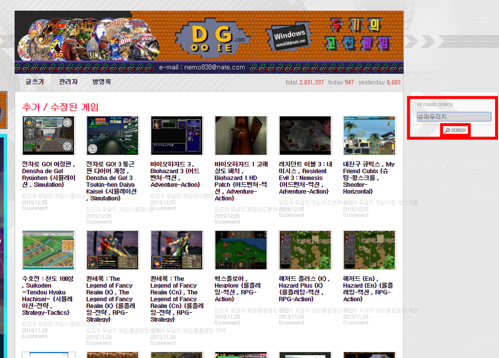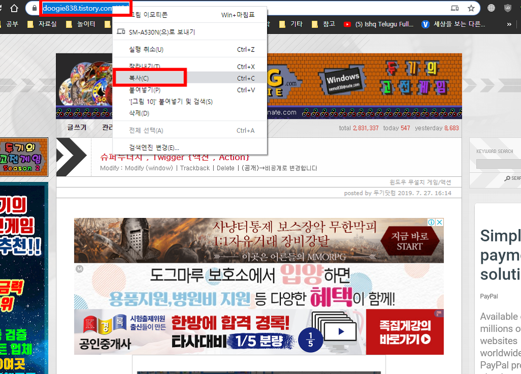1. 두기의 고전게임에 접속한다 (nemo838.tistory.com)
