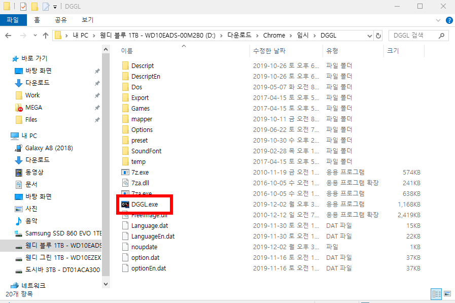 4. 다운받은 DGGL.7z의 압축을 풀고 'DGGL.exe'를 실행한다.
